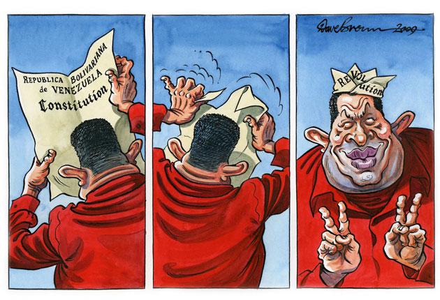 Hugo Chavez Cartoon Posted by William Johnson in Spanish 4 - Manuel on Friday, February 24, 2012 at 10:30 am cartoon170209_133511aEn el cómic, Hugo Chávez, utiliza la Constitución de Venezuela para hacer una corona. La tira cómica expresa los características de corrupción. Tambien expresa los valores de Chávez. Comments No comments have been posted yet. Log in to post a comment.
