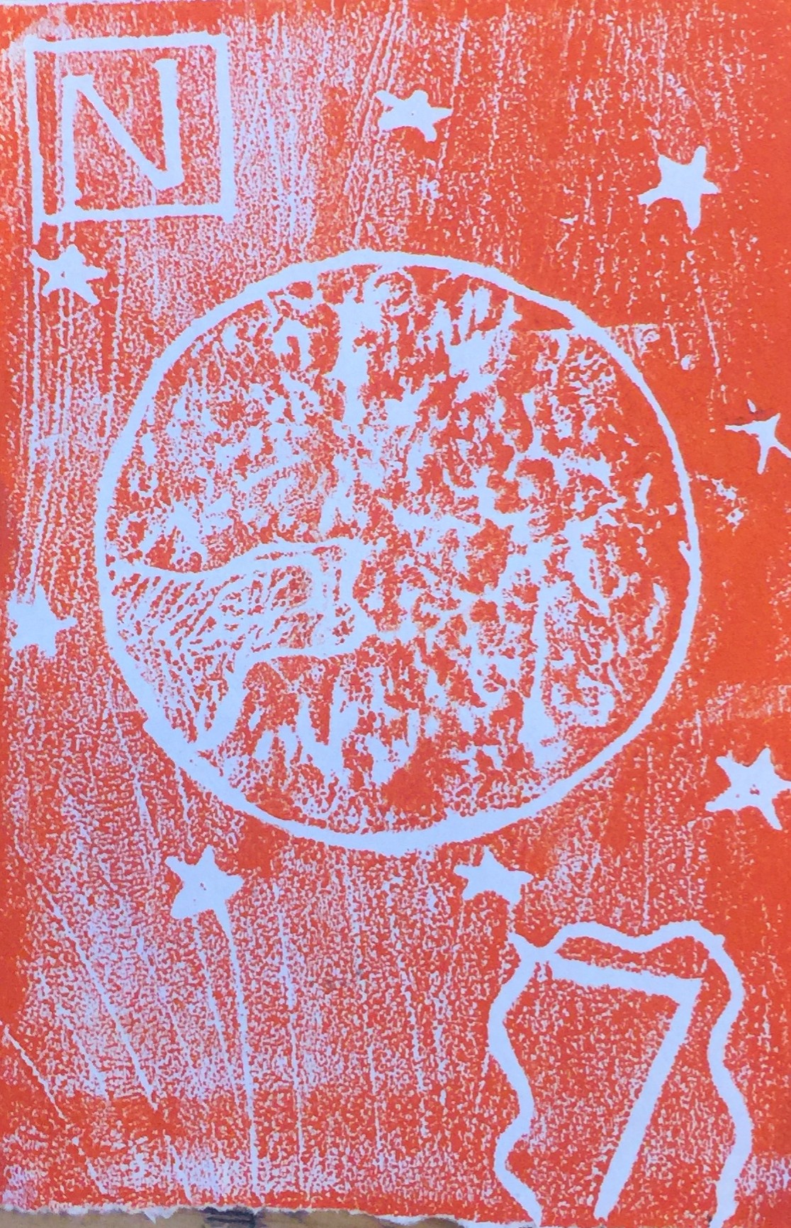 My imagery was the planet Venus. I chose this because Venus had been proven to some amount of nitrogen in its atmosphere. My process for making this was pretty simple. I paper sketch and transferred it into the plate (making sure it was reverse). After that I rolled the ink on the plate until I heard the tacky sound. Finally I put it on paper. If I could redo this, I would have put more depth into the plate. I loved when I got to see my finished product. I just felt really proud of it.