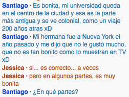 For this blog post, I spoke with someone named Santiago, from Colombia. I actually enjoyed speaking to him. I felt really comfortable speaking with him, so I think that's why my Spanish was much better. We spoke a little bit about school, and then we spent time speaking about the culture in Colombia.