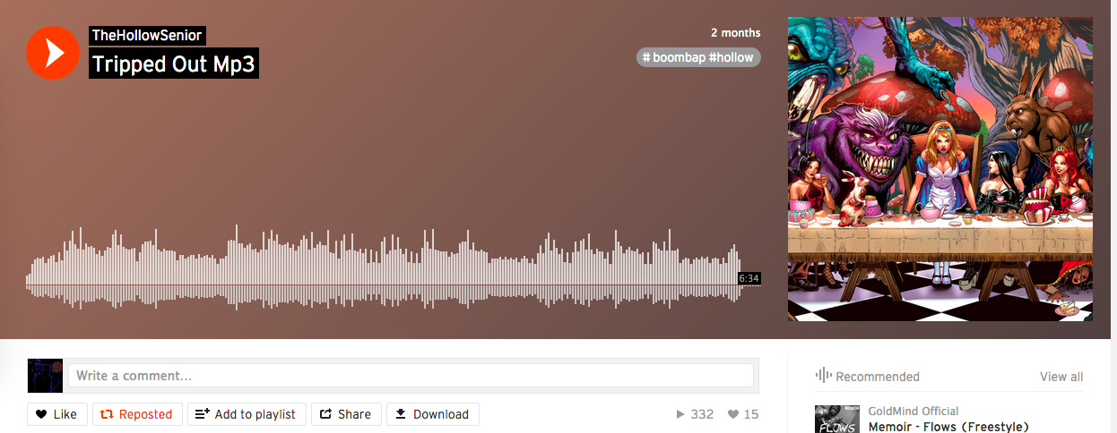 Image three: The first song uploaded to Soundcloud (On March 2nd, 2015) from KaBoni's rapping clique, "The Hollow Martians"