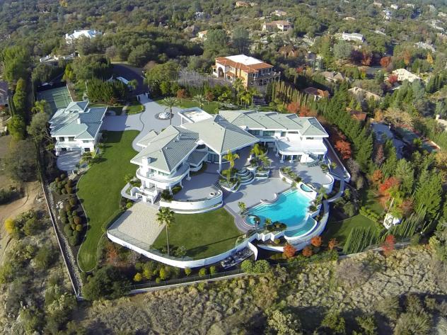 Está es la antigua casa de Eddie Murphy. Este casa es muy grande, y súper caro. La sala tiene dos juegos de escaleras, una largo sofá, y muchas sillas. También, hay muchas ventanas, y el piso es muy bonito. Este sala es muy grande. En el habitación principal, hay una grande cama, pisos de alfombra, y una tele encima de la mesa. La casa tiene muchas piscinas, y una cancha de baloncesto. Este casa es muy bien.