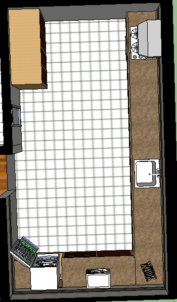 El garaje es pequeño y tiene un mota. También un bici en el garaje. Es un buen lugar trabajador en el garaje en bici y moto. En el garaje dos ventañas y tres estante y cinco cajas. El garaje es muy conveniente y bien es genial para guardar cosas. !Qué perfecto!