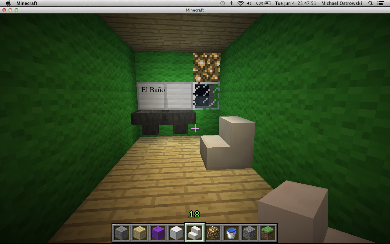 Biblioteca es verde, un dormitorio es verde y azul, y baño es violeta.