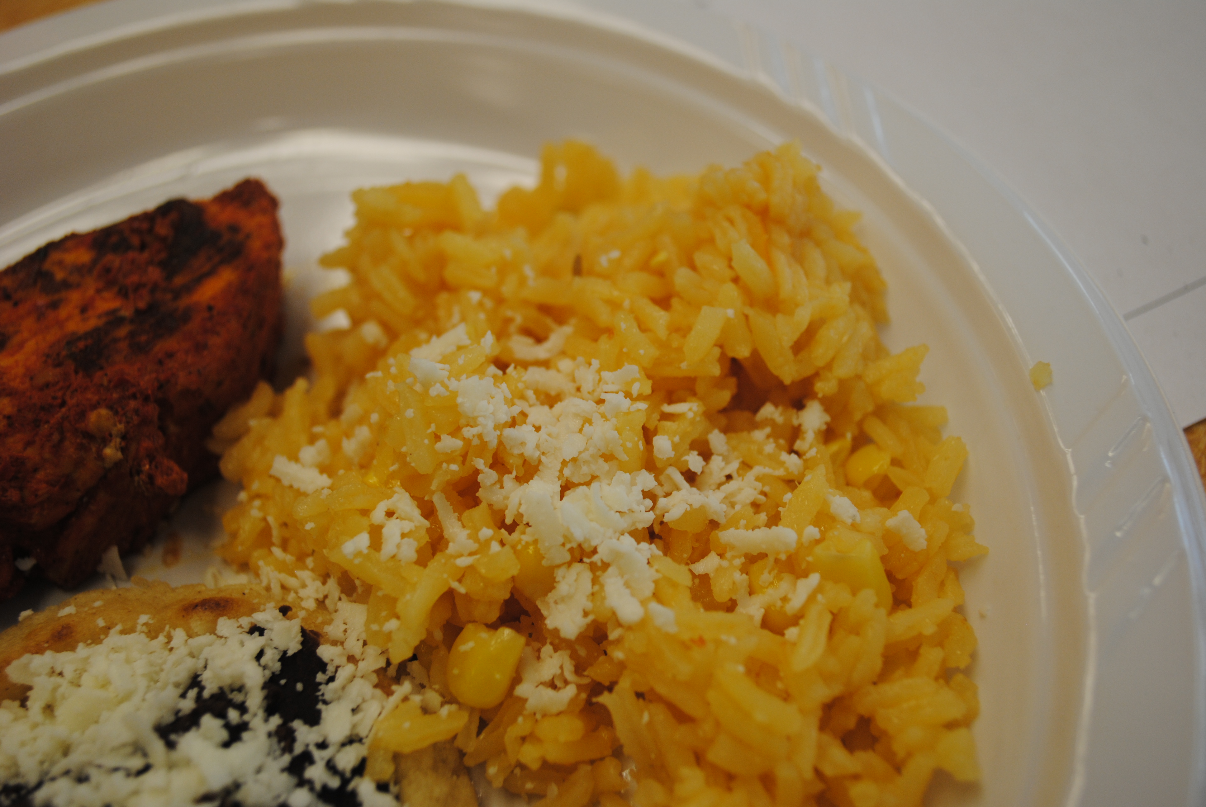 Opinión: ¡Es mi favorito! El arroz es muy dulce y la maíz y frijoles es excelente. Con queso es muy bien.