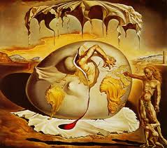 Pintura: Niño Geopolítico Observando el Nacimiento del Hombre Nuevo pintado por Salvador Dalí.