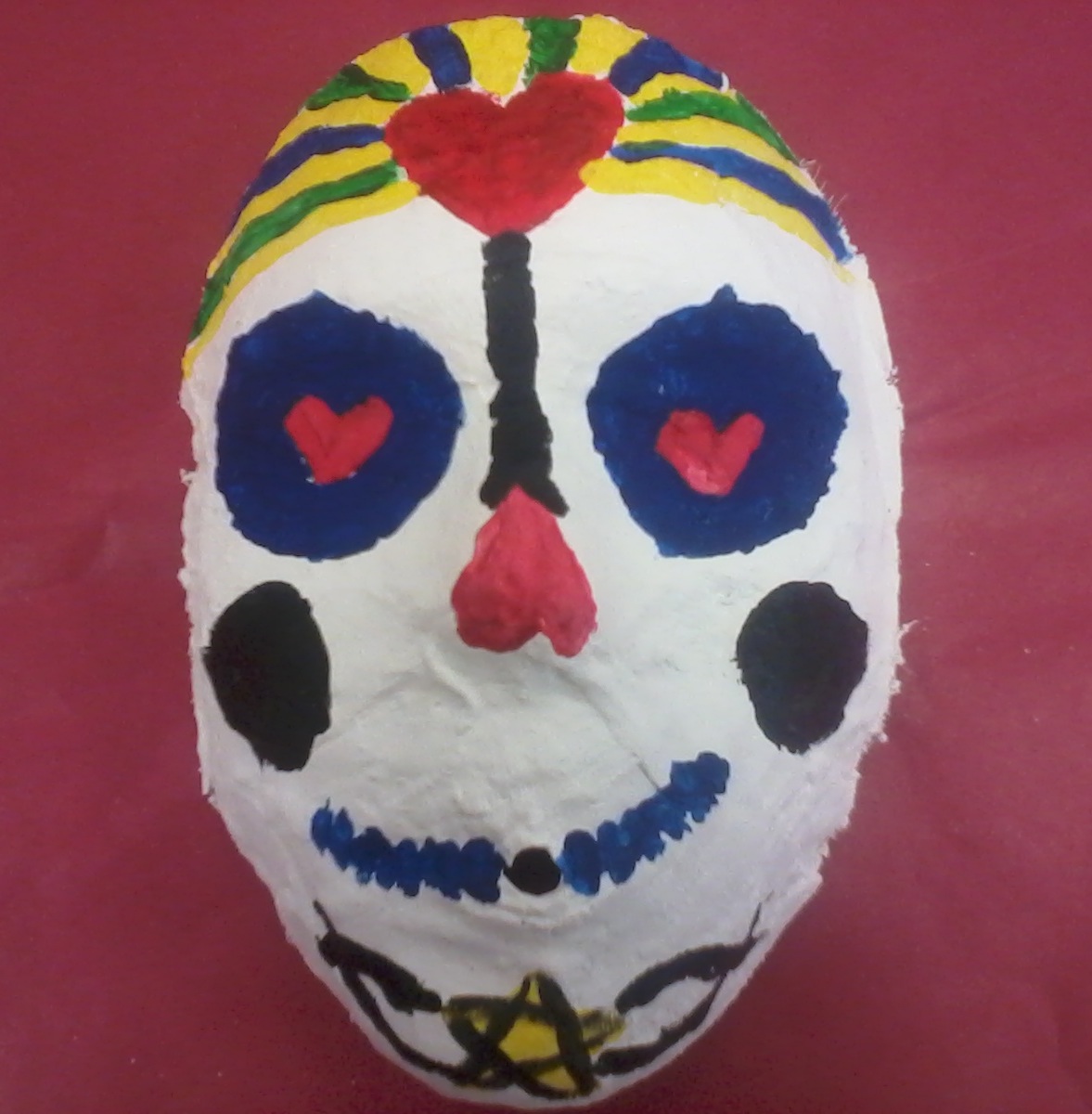2. Explain how you came up with the design for your mask/skull.- When we first got this project, I looked up sugar skulls on google images to see what they usually looked like. From this I got the idea for my design. I tried to make it similar to the traditional looking ones, but also how I wanted it.