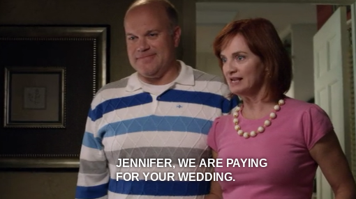 Jennifer: No way. We are not asking my parents to pay for our fake wedding.”
