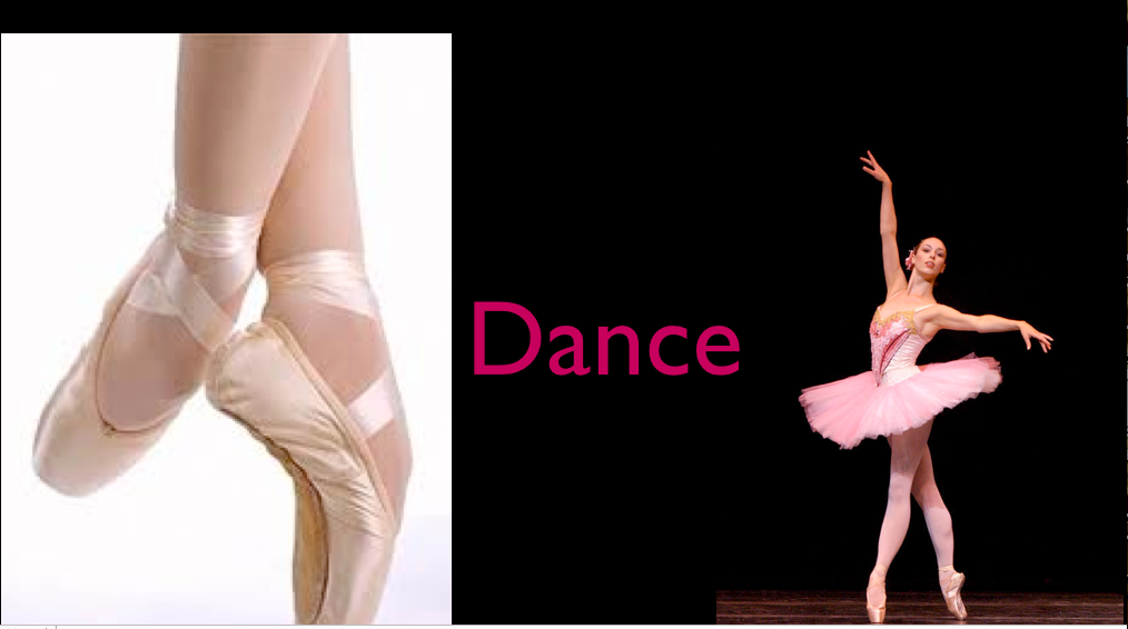 when i was 5 i did dance and one of my classes were balett. i chose a black background to make my pictures POP out more and stand out. i chose the shoes and a dancer because i felt as though it was imporant for the reader to see what am about and the things i like to do. below is a sneak peak of my slide !