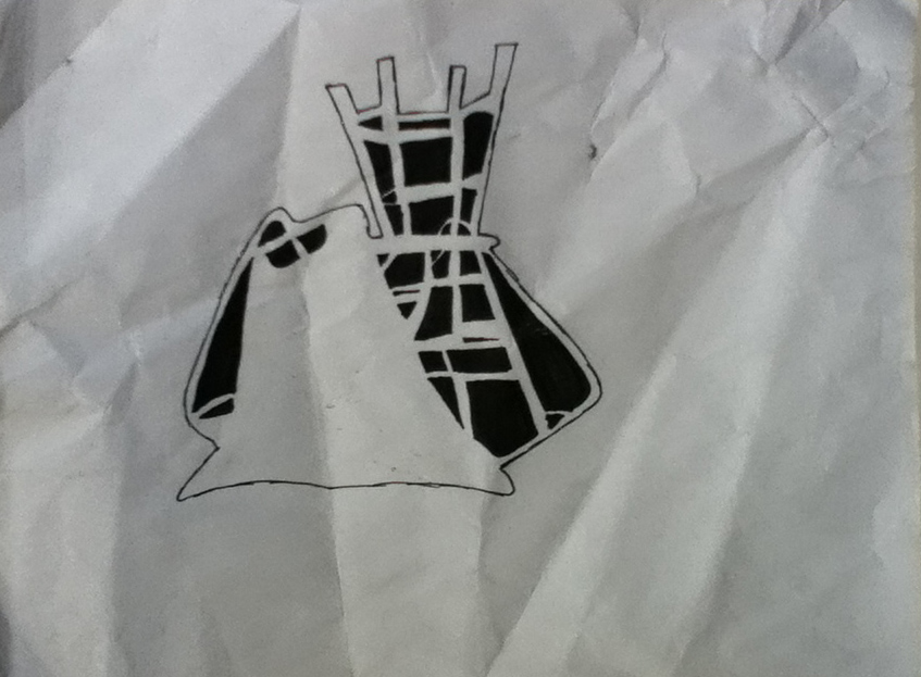 2. For the cut out I took notice of the green color. I knew that this would be my positive space, forcing the black part of the artwork to become negative space. For the stool I drew the outline of all the objects. Afterwards I added in the details of negative space within the shape.