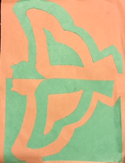 You can find negative space in my cut out with the area that isn't making up the owl. The green on the left side is presented as the positive space while the brown in the back is the negative and same goes with the right side.