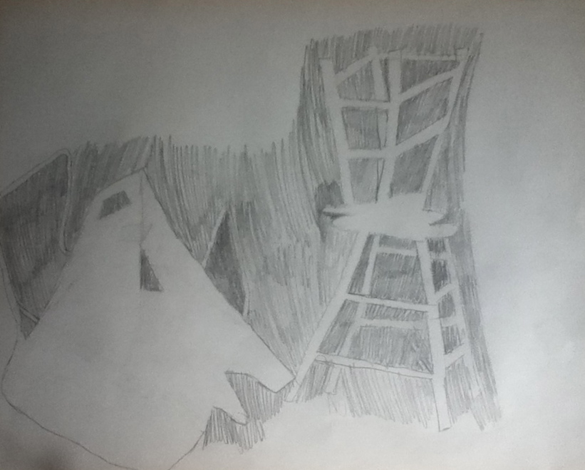 B. For my cut out, I found negative space in the outlining of the different parts. For the stool, I first focused on the outline of the stools and then looked at the space outside the outline, not inside.
