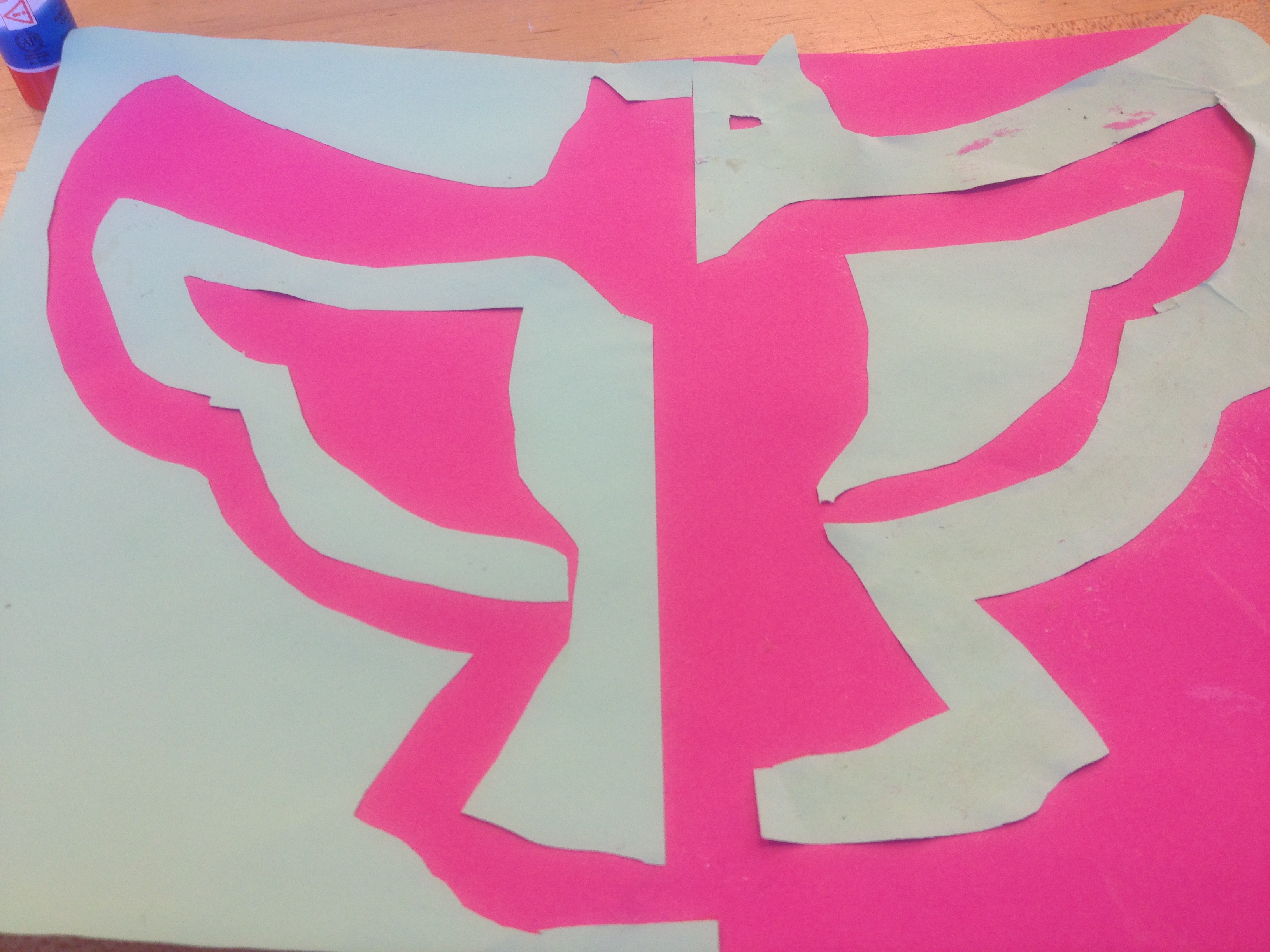 I found negative space in my cut out when I pasted my turqouise pieces down on bright paper I could really see the negative space. I found negative space in my still life drawing, by shading in between the white space around my object.