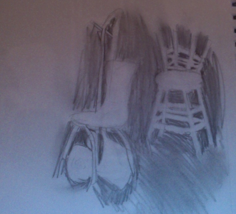 I found negative space in my cut out by using the template to trace. I found it in my still life by drawing the items, erasing any detail and then shading the spaces in-between.