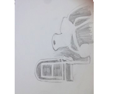 I found the negative space by looking in the empty space between the objects. Then I shaded it in.