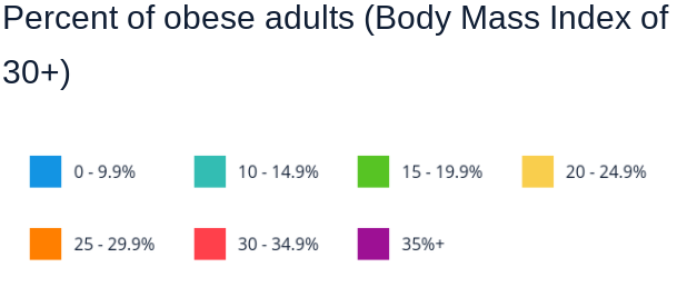 Now, I said before that obesity cases are going up and it’s becoming a bigger problem every day, but just how many cases are there? According to State of Childhood, “[In America,] adult obesity rates now [September 2020] exceed 35% in 12 states, 30% in 35 states and 25% in 48 states.” 23 out of 50 states had an adult obesity rate between 30% and 34.9%. That’s a lot of obesity cases! But why is this bad? What’s the worst that can happen to someone with obesity? NIDDK says that “Overweight and obesity are risk factors for many health problems such as type 2 diabetes, high blood pressure, joint problems, and gallstones, among other conditions.”