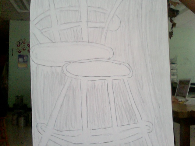 In my stool drawing I show the negative space surrounding my stool drawing my shading in the space around it.