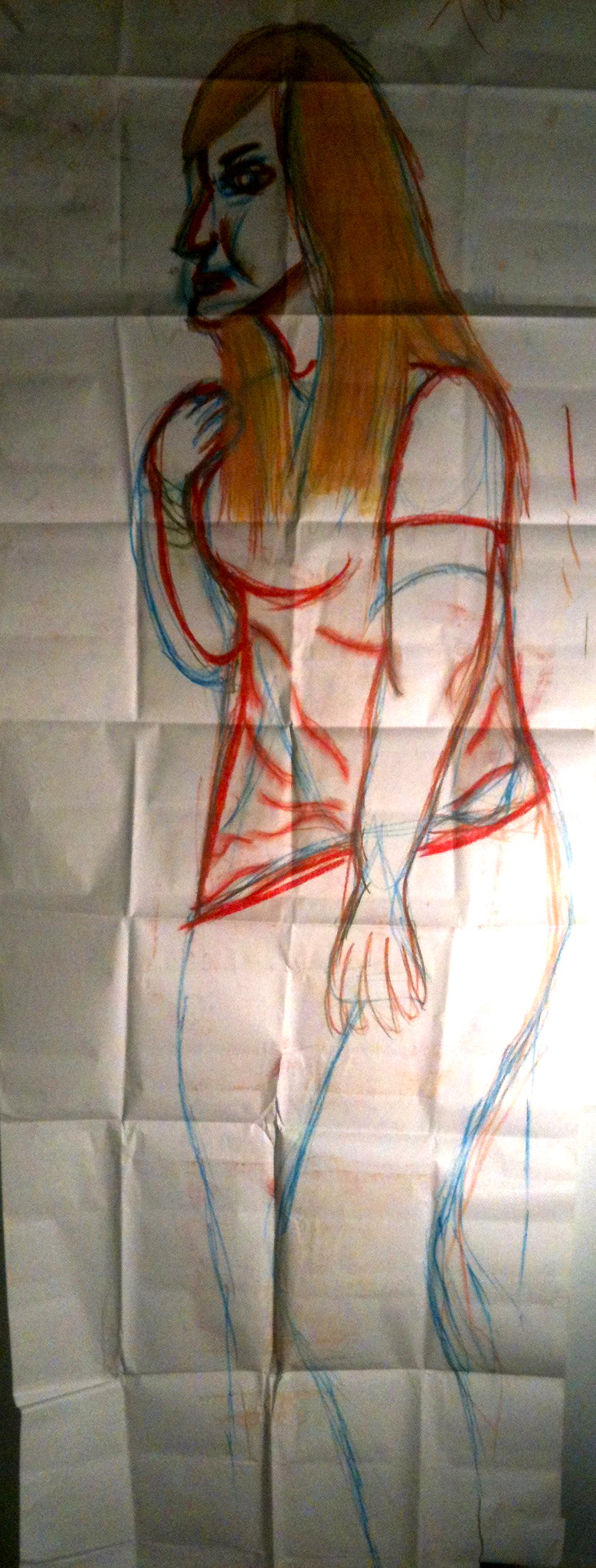 While I was working on the figure drawing, I chose the right color that would bring the picture out then I start drawing the shapes that make up the picture. Next I connected the shapes to make the outline of the person and then did the details such as the shading and the creases of the shirt. Finally I went back over me work with a different color to make the body shape even better.