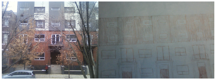 2) The most exciting part of the surveying project to me was the surveying itself. I enjoyed the calculating and the recording and the measuring. It was also my least favorite part. When we were measuring, we constantly had to watch out for cars. We had to abandon our attempt more than once because the mirror we were using was in the street (we quickly found the obvious answer to that problem). It was also creepy, because we were just standing there looking at people’s houses, and did not want to look suspicious.