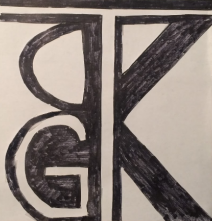When I was thinking of my logo I thought of things that I like, feel strong about and do. In the beginning I was thinking of do something more complex like a surfer and palm tree forming a K but I am not a very good drawer and it was hard to tell what it was. I then thought of using the sign language sign for K because K is the first letter of my name and because the sign looks like a peace sign. After looking at my teachers logos, Marcie Hull and Steven Herrera, I was inspired to create a more simple logo that involved my initials, like theirs. I first started by sketching and trying out anything I could think of. Eventually I came across the idea of having the B and K be next to each other. After thinking some more I thought I could put a T across the center making the B and K clearer. I decided to use negative space for the T as it allowed me to include meanwhile being discreet. After looking at it for a bit I decided to add a rectangle above the top of the T in positive place to make it more clear and because I thought it looked nice. By now I had it all on my computer because I found it easier to navigate negative and positive space this way. I finally decided that I was going to add the G in positive space at the bottom part of the B. I finally liked my logo so I decided that I didn’t want to change much so I just cleaned it up to make it look nicer.