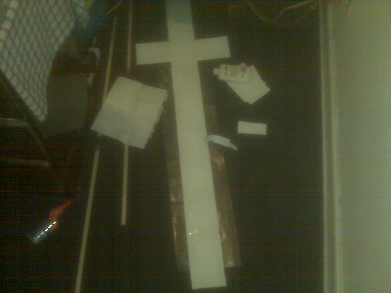 After the harden paper became harden, I started building the structure of the sword. Adding on layers of harden paper to a point in which it could hold its own weight and in the form of a T shape. On the structure of the sword I drew an outline of the sword with a pencil, protractor, and ruler until it fit the designs of my blueprint. Using two small long sticks as support on both sides of the sword it became clear how sturdy and balanced the sword will become and it was time for the final part. Covering the wooden support in a matter where it shows the thickness and detailed parts of the sword. Afterward getting assistance from a fellow classmate, Natalie Sanchez to paint the sword mainly due to the reason that I’m not a descent painter. Combing multiple shades of yellow and silver that truly brings out the brightness and power of the god sword.