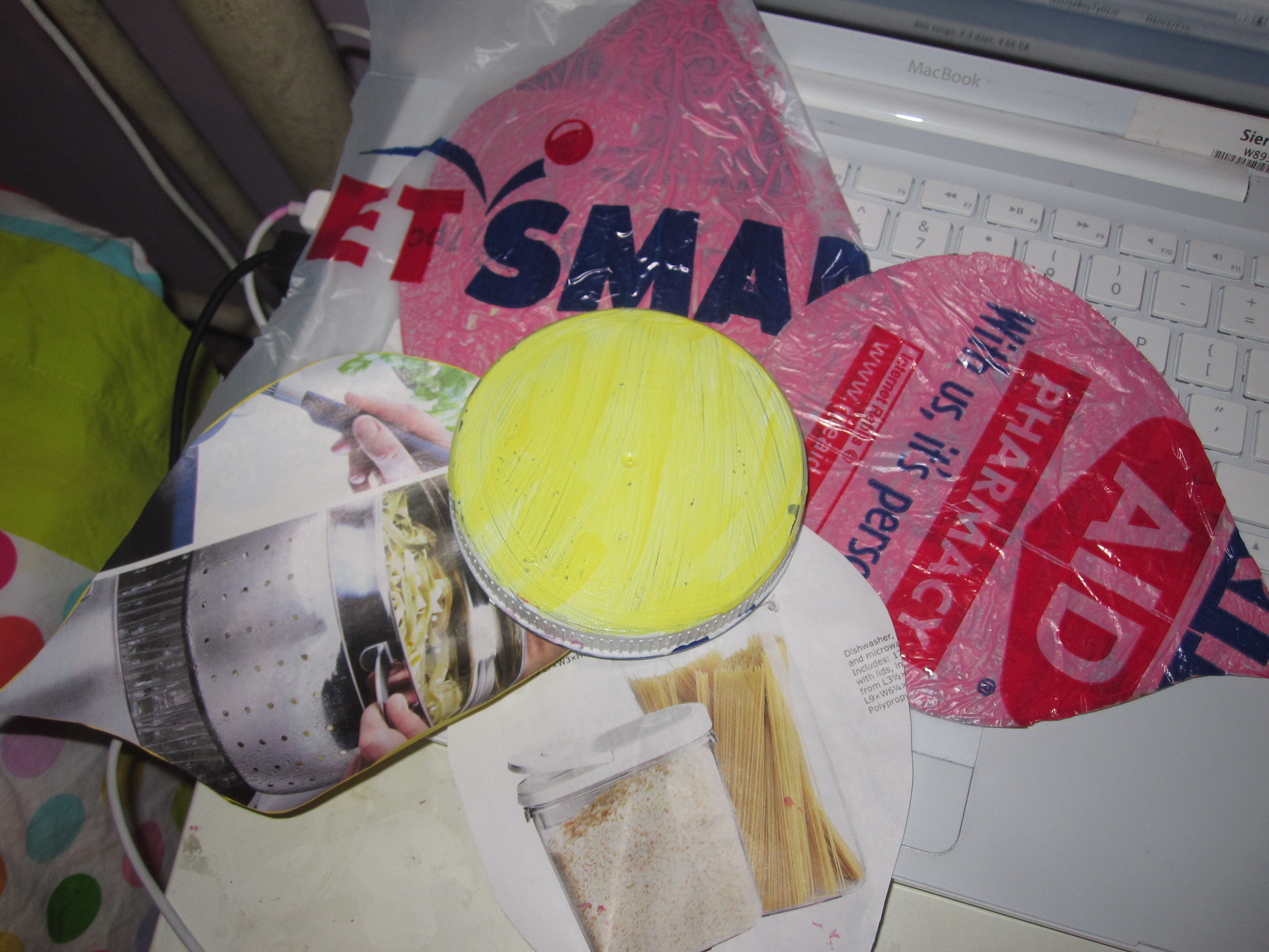 My final idea was making a flower out of recycled material. I particularly liked this one because it represents a small piece of the environment. I chose to make the leaves out of newspaper and plastic. And to make the middle of the flower by using a bottle cap. The stem potentially would be made out of green pipe cleaners. This project fits for because its made completely out of recycled materials. Also because I like to cut and paste which is how most of this project is done. I painted over the plastic to give the petals some color and then glued plastic bag over it to be able to see that this project is actually recycled.