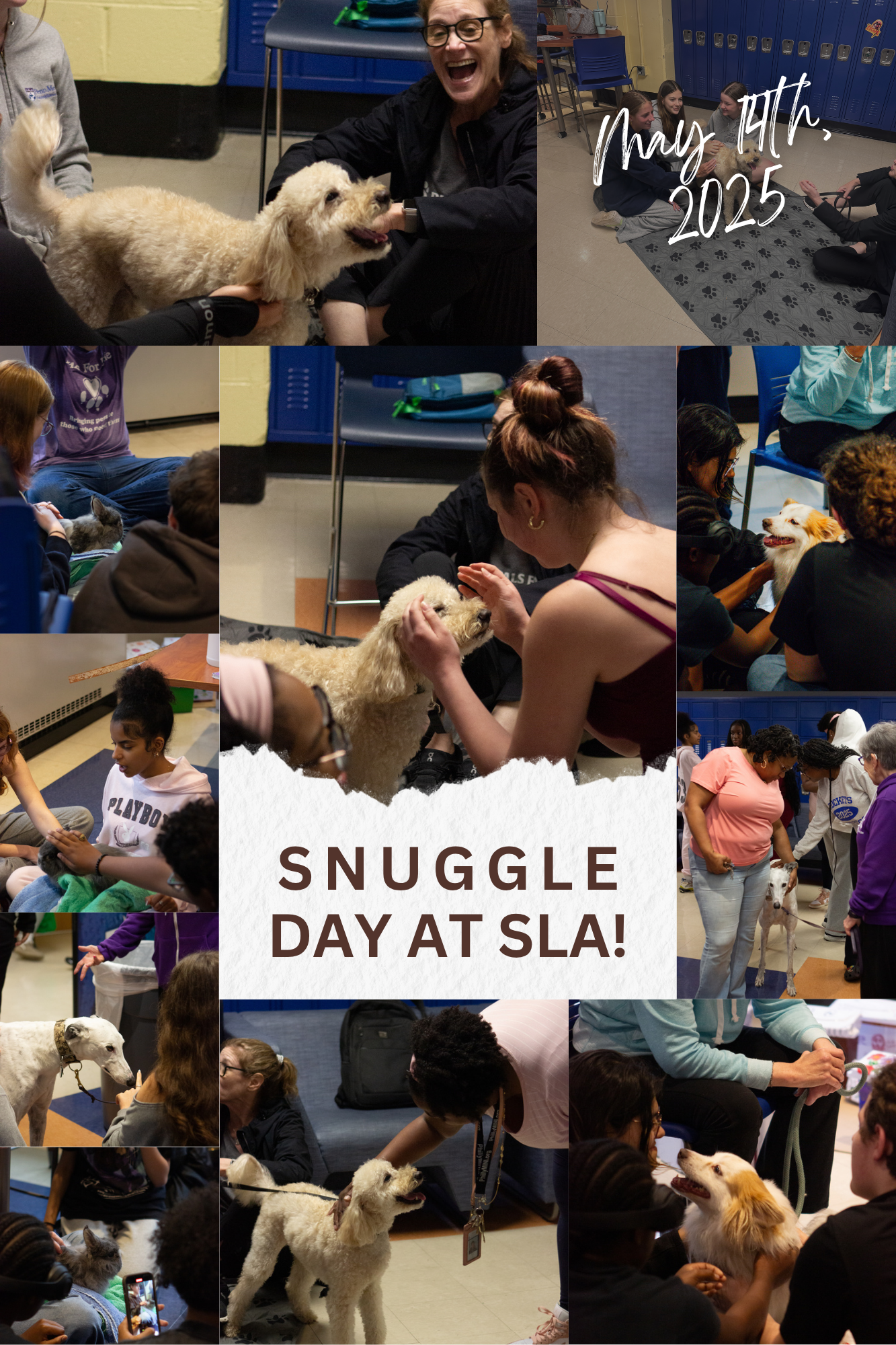My Capstone focused on the mental health aspect of the SLA community. I wanted to do something that would be a memorable experience for students who endure stress because of school-related work. Originally I wanted to bring in a group of puppies for people to play with in a playpen but I ran into many obstacles which changed up that plan. For my final product, I hosted an activity called “Snuggle Day at SLA,” where everyone who was taking the biology keystone or just at the school could come to the ballroom and interact with four different therapy animals. There were three dogs and one bunny but all were very interactive with owners that were informative. I got a lot of positive feedback from students and staff and am hoping to keep this a capstone legacy that I will pass along.