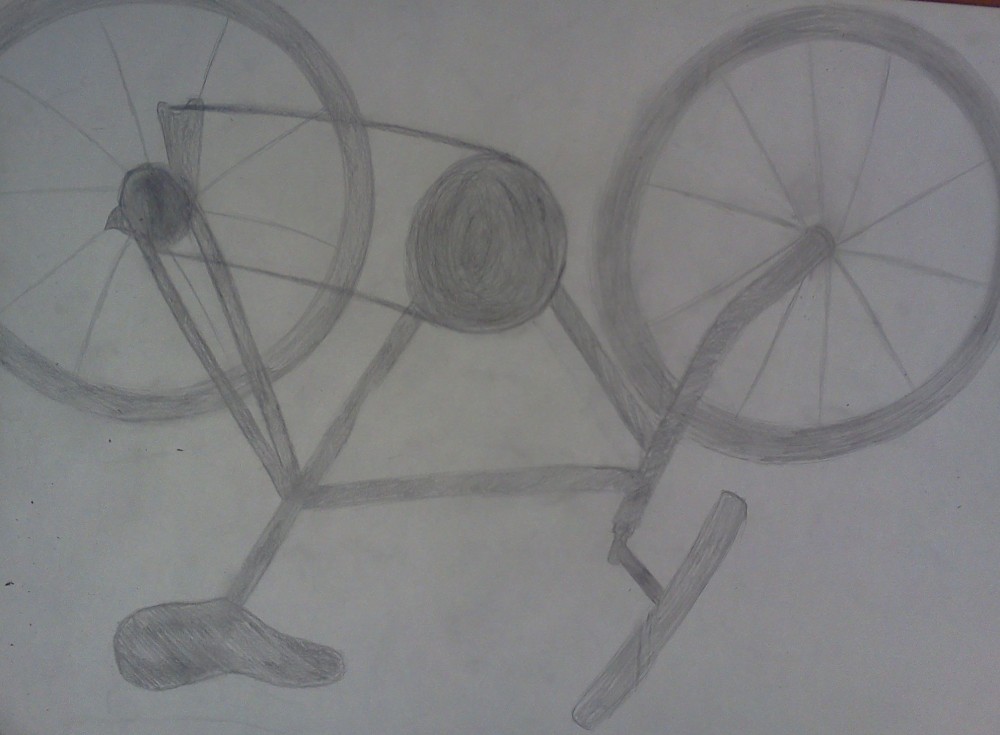 Bike Drawings: I have never drawn a bike before and I was constantly stressing about whether or not the mechanics of the bike looked right, but I kept going. To me, the hardest part of drawing the bike was putting in the spokes, they never looked right when I put them in, but I believe in the end they turned out fine.