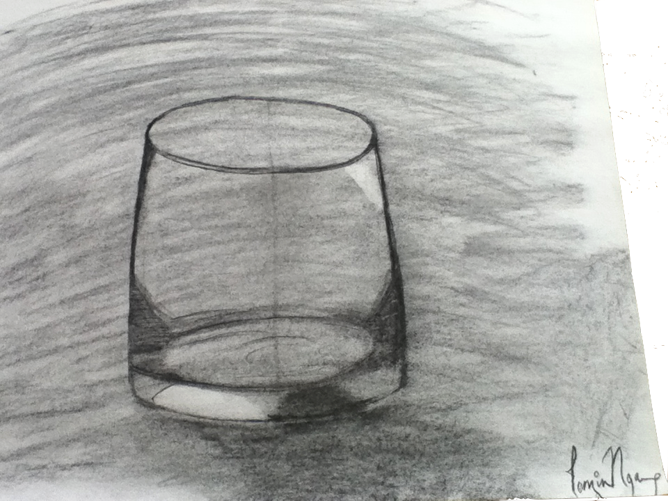 I've never drawn a clear object before. I knew I wasn't going to be able to make a perfect drawing when i saw Emma's video because I've taken a class at Fleisher, which was oil painting where we also had to work with shading. It was a gruel-some experience because every time we had a shadow, we'd have to darken or choose a different color with same relation. However, in this drawing, we were only using charcoal and eraser, which was easier and it looked a whole lot better than my oil painting piece.