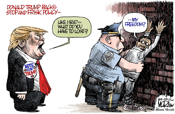 This picture is from The spokesman review and it shows a African American being stop and frisk for no reason. You see Donald Trump and basically when he was talking about stop and frisk in the presidential debate he wanted to make the stop and frisk law be enforced even more in urban areas. So, like it would make African Americans feel uncomfortable/ not safe anymore because now the cops will be checking them for no reason. Also, I believe that this shouldn't be enforced more because that will make kids not be safe no more if they see cops stopping people and checking they probably will make them think “Will this happen to me?”