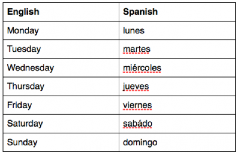 You might have noticed that Monday is listed first in the list. This is because in Español, lunes, or Monday, is the first day of the week. Another surprising fact you might have noticed is that the letters are not capitalized. In Español, you do not capitalize the days of the week.