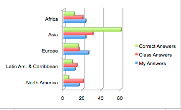 I was pretty much off in most situations but I was pretty accurate in the religion section. I think this is because I see a lot of diversity in religion in Philadelphia so it sort of represents a world scale. The section that surprised me the most was the Asia for geography, or maybe even geography as a whole surprised me the most. I honestly didn't think that so little live or are from North America and that such a number live or are from Asia. I personally think that I was so off-course because I tried to stay modest in all of my answers usually suppressing my first answer. Despite that I still think that I could not really think in terms of the whole world because I have only seen certain parts of the world which make me think of terms of my world, not the whole world.