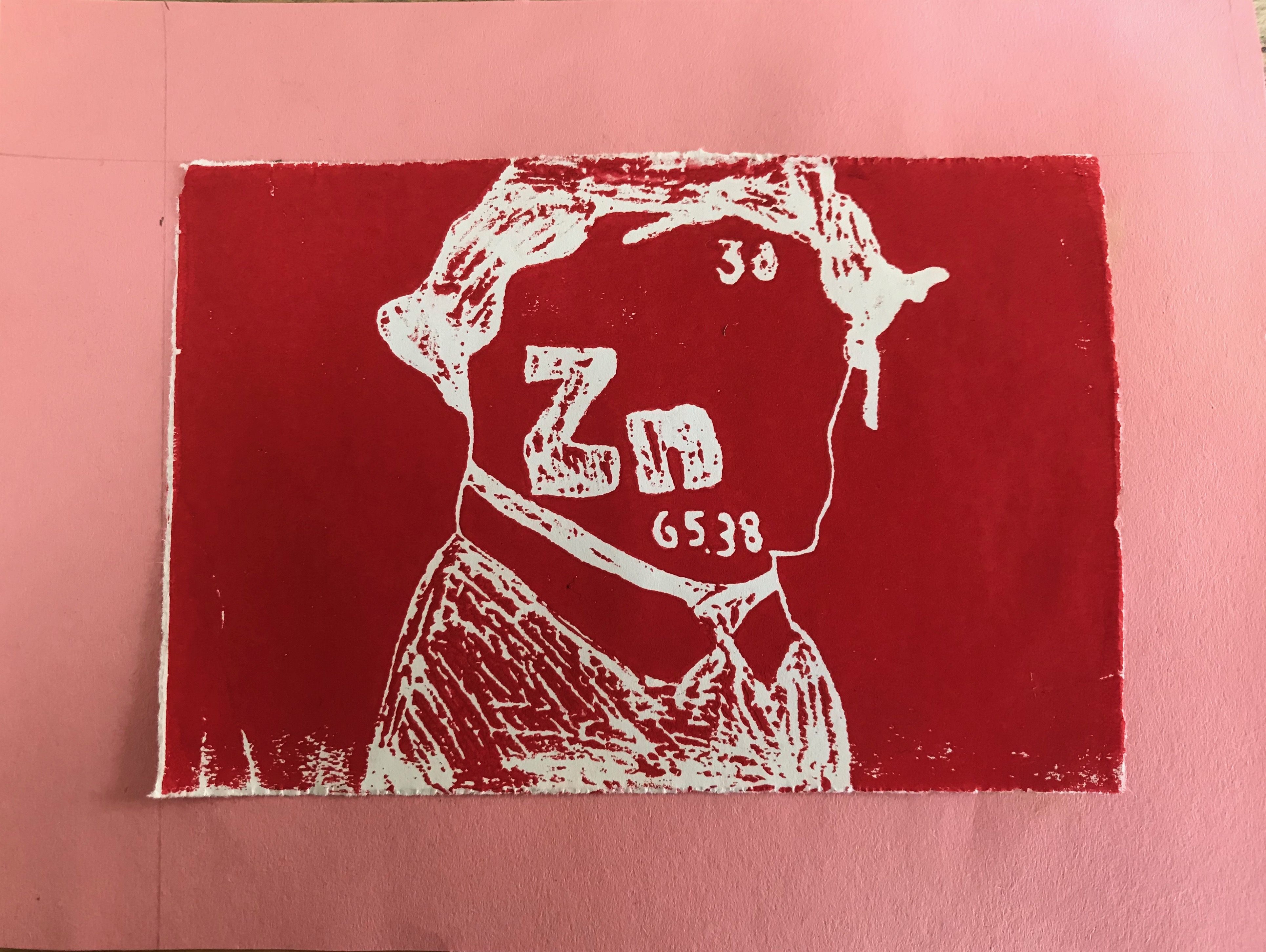My element is Zinc and its atomic number is 30. Zinc was found by Andreas Marggraf in 1668. Zinc is the first element on the group 12 on the periodic table. Zinc is used to make dry cell batteries, roof cladding, and die castings. For the image I chose to draw the silhouette of Andreas Marggraf, since he found this element. I first drew three drafts of what I wanted in the dimensions of 4x6''. Then I traced the drawing into the tracing paper, then from the back I traced the drawing on the styrofoam plate. If I could do this differently I would use different colors. My favorite part was the printing part because it was really fun to get the right amount of paint on the paper and then looking at the results was just amazing.