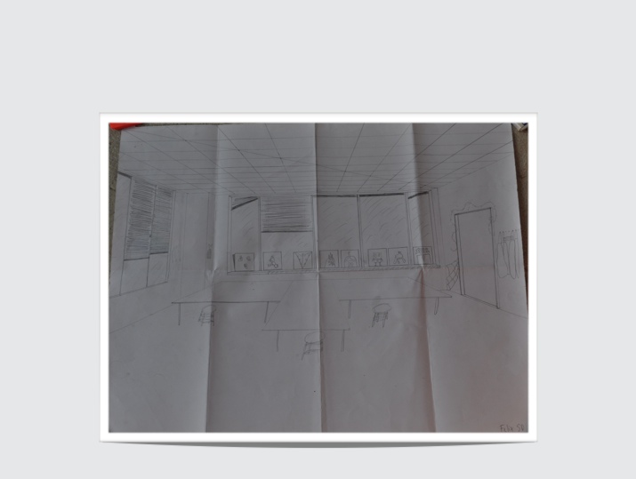 If I were to give someone advice on this drawing that was doing one perspective for the first time I would say yes it is hard. However when you feel like you just cant do it anymore and you want to tear you hair out you need to push through that and just breath because you can do it and can get it done. Another thing I would say is when you are looking at the drawing don't look at the final idea of how you have to draw the room. Just think about each line that need to be drawn and by the end of each step you take it will turn out okay. Because I know I was so stressed because all I was thinking about was the fact that I have to draw the art room but is you think about it, it is just three lines being brought together to make the drawing. No stress
