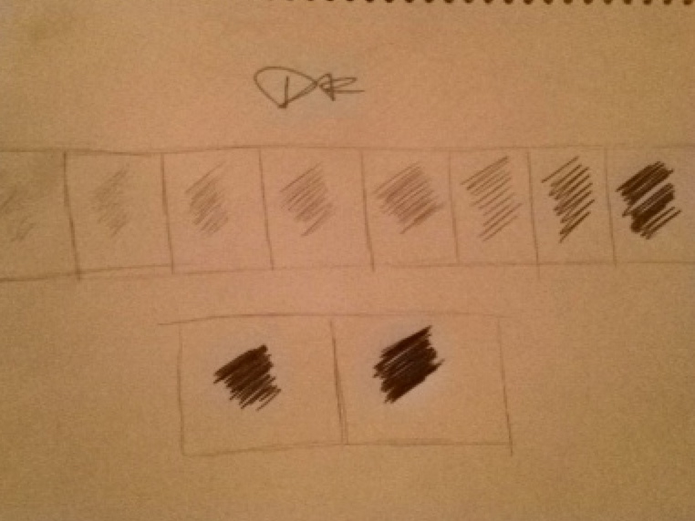 The reason for doing these drawling are to prove that it is very simple to create a full range of values with only a pencil and a piece of charcoal. By adding more or less pressure using pencils,and/or different pencils, I created transitions throughout my artwork.