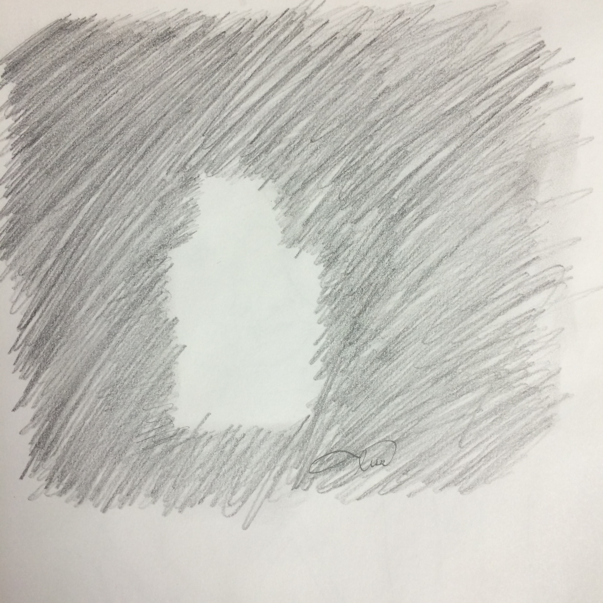 What I would like other people to understand about my art work is that it was one of my first drawings when the focus was negative and positive space. I feel that I have learned many different things about this drawing. If you are able to imagine this image in your head of an object you can identify the negative and positive. The focus point in this object was the outline of the object and the space inside of that object. The goal was to make the positive space seem as if it pops out against the negative space. I feel I have accomplished my goal.