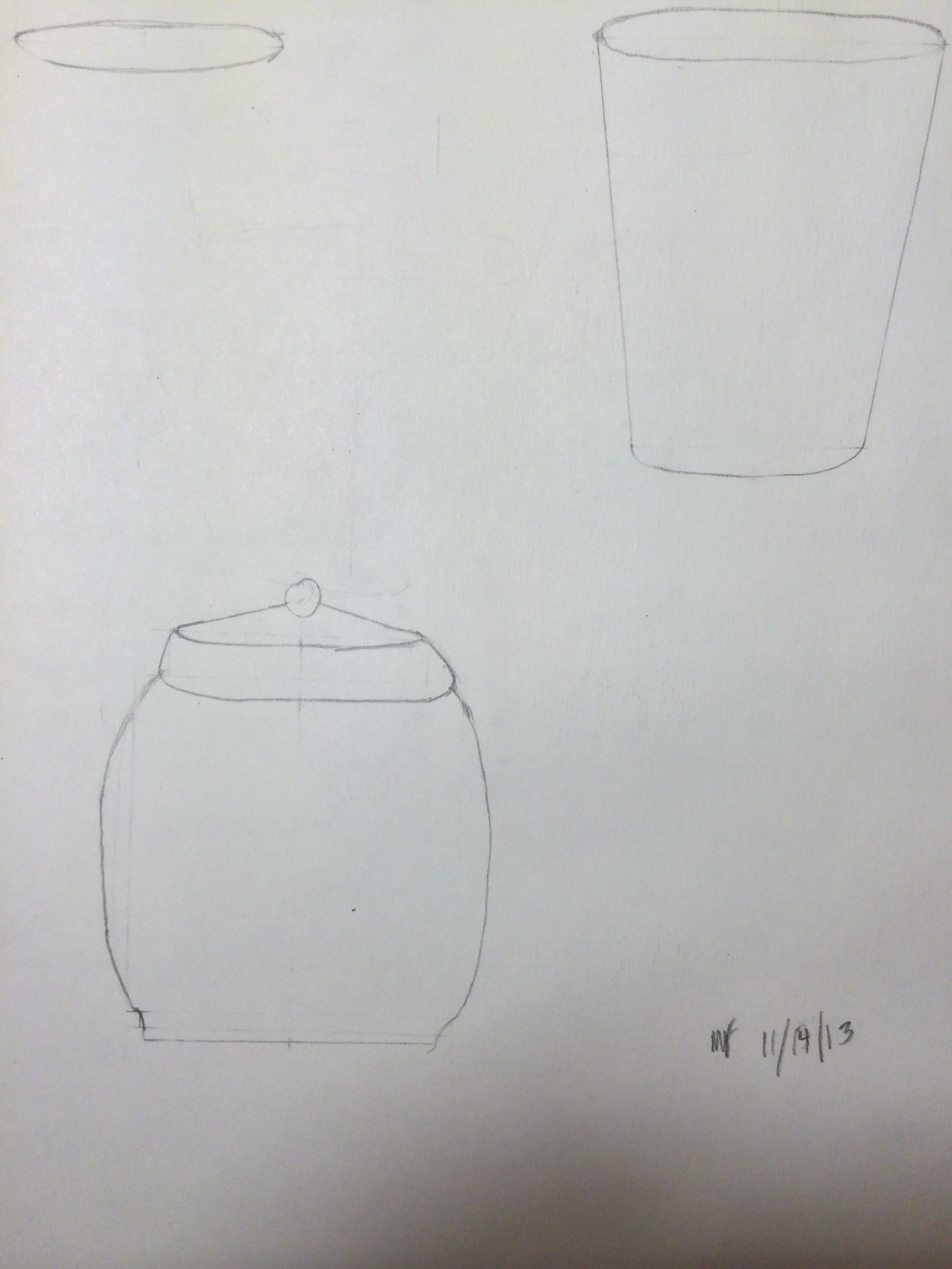 In these objects I am creating objects with actual lines and working to define the forms of the lines.In this lesson it focuses on the artist creating values of objects rather than the lines and shapes of the figures. I have completed this lessons by drawing curved lines