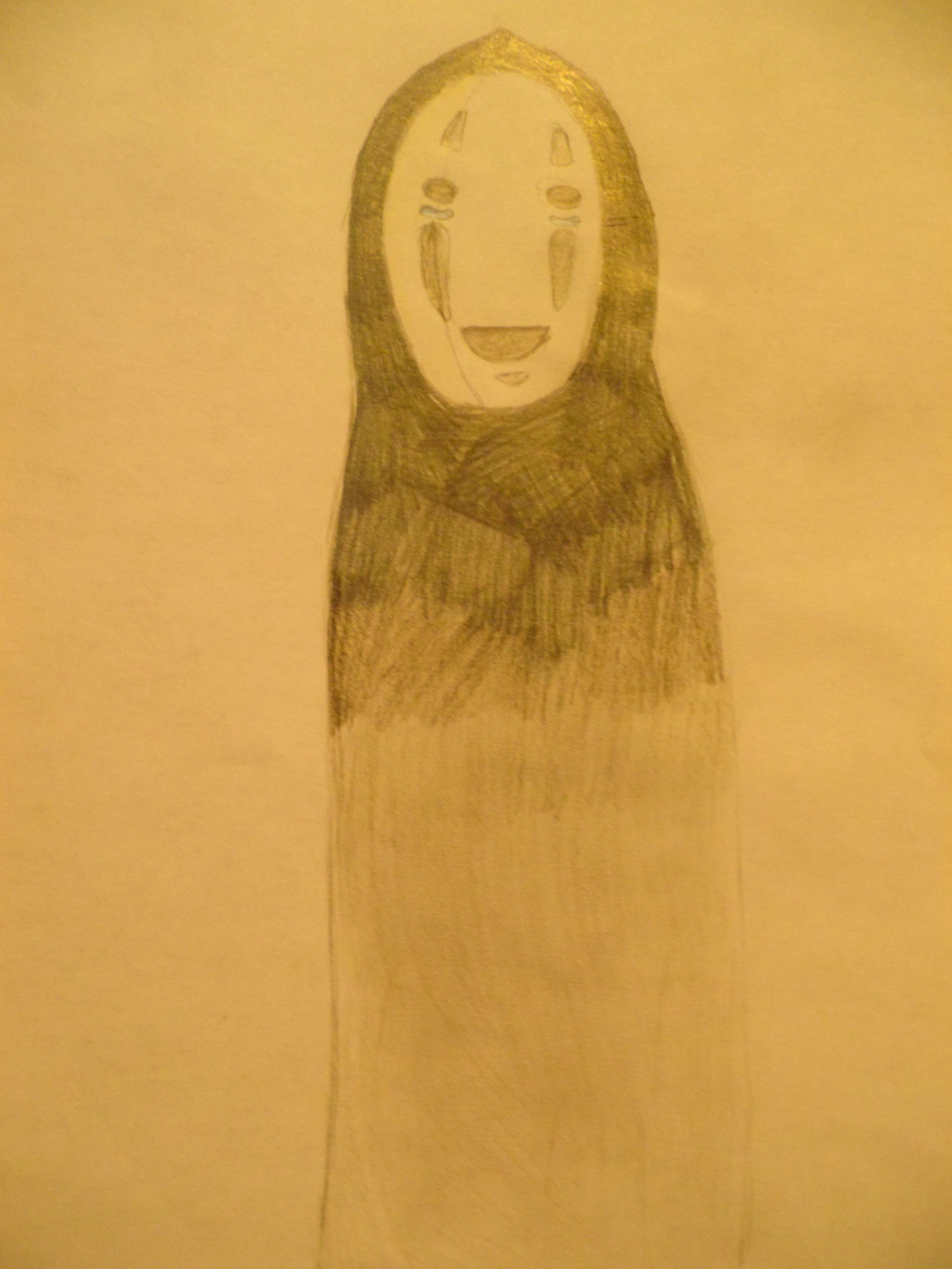 Spirited Away was my favorite movie as a child. I have seen it at least twenty times. So I chose to draw the character no face. He can be seen below.
