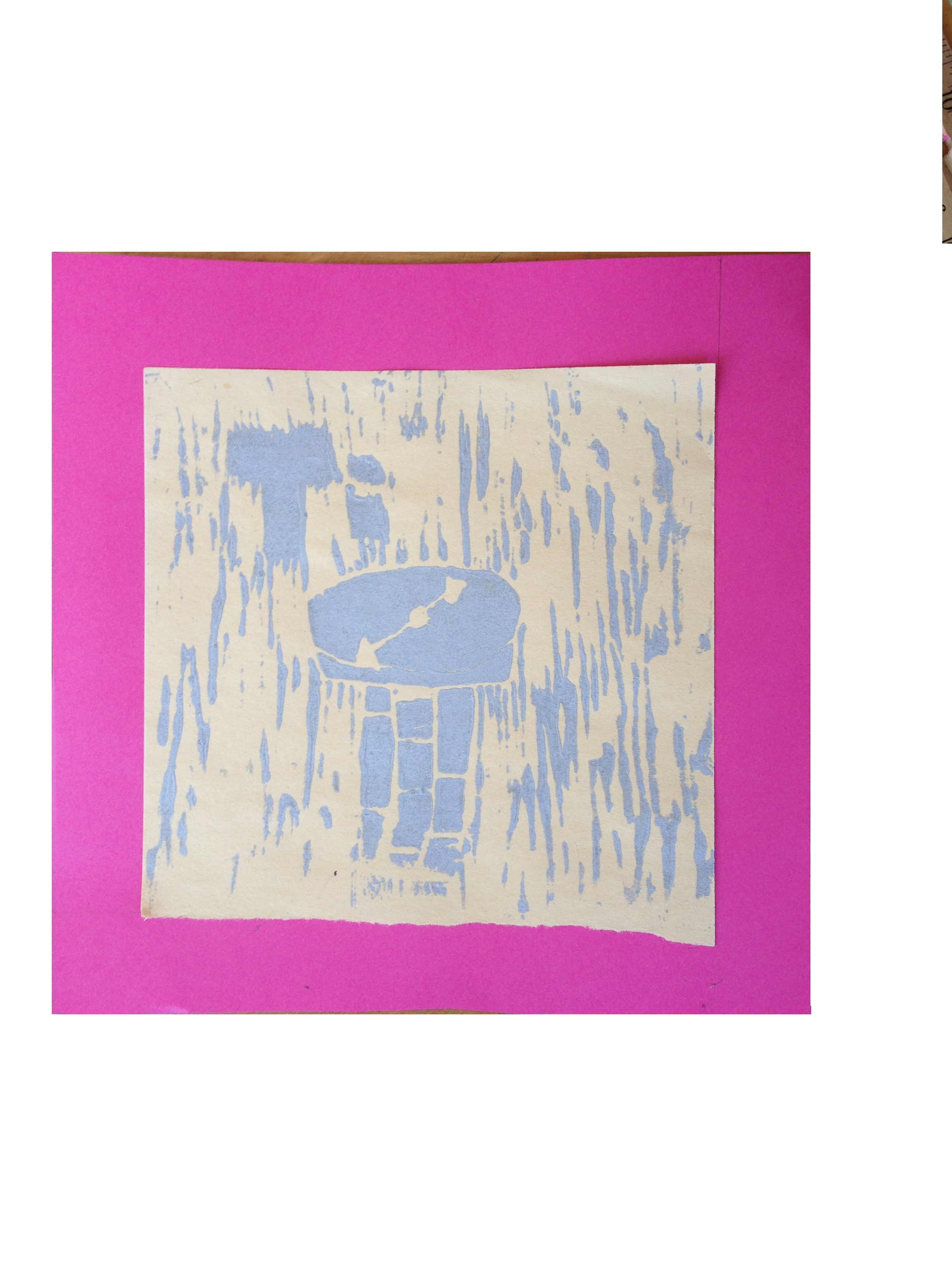 Reflection- I reflected as I printed more prints because the paint would stick in the lines of the block and so I thought that if I would do it again, I would make sure that the lines I carved are deep enough.