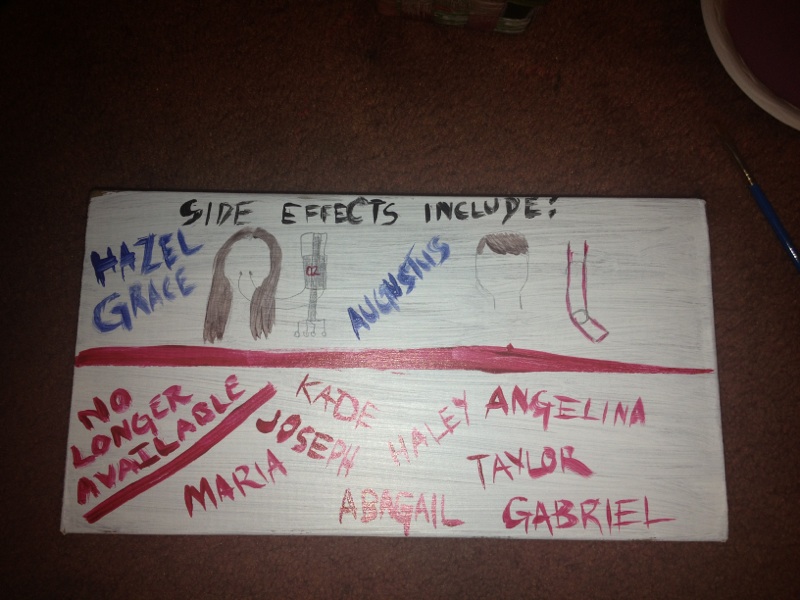 I feel that I can relate to some of the characters during this book with emotions. Hazel constantly talks about how she is a side effect of life and feels misplaced. While I cannot say I have cancer I can relate to feeling outcast and misplaced. I think it’s something that most teenagers go through, and I’ve definitely been there and done that. I have also been in a bad mood and moped around my house like Hazel in the beginning of the book. I would say I also relate to Augustus in the way that when I see a friend that’s bummed out I try to get them to have fun and enjoy themselves.