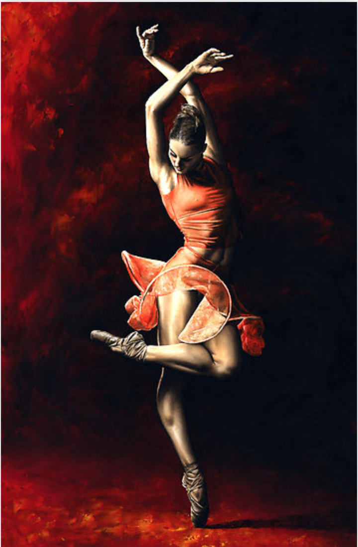 Esta es una pintura de Lauri Blank. En la obra es un lago con Pistas de lirio en el fondo. En frente de el lago, veo una mujer bonita. En un vestido largo rojo, ella está de pie fuerte pero con gracia en un lugar feo y turbio. Ella es muy brillante mientras el fondo es un poquito oscuro en comparación a ella. Hay mariposas alrededor ella representa espera por ella a pesar su situación en un lugar oscuro. El tono de la obra es complicado pero la obra en general es sobre belleza en un lugar corrupto.