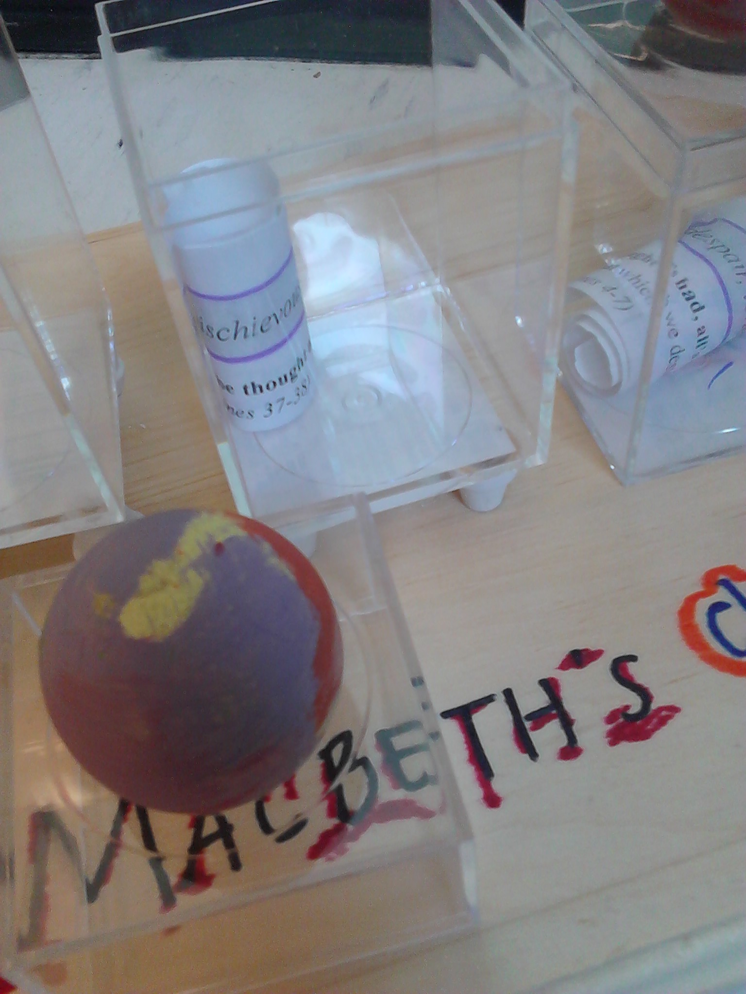 This project is about how Macbeth was a good and sane man until he began chasing power and was king. It shows his character journey and downward spiral, and also tells the story of the play. The creative part is a song parody of the Maroon 5 song "Love Somebody"