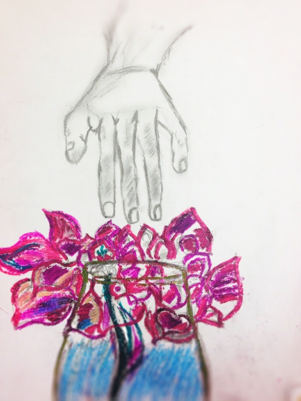 Hey art bloggers and readers, my name is Sarena Shuman, and I am an artist in high school. Most of my art blogs are on the assignments my teacher gives me, and I will elaborate on how I feel, and what I did to complete the assignment. I will also include at the end of the blog, a photograph of the masterpiece. Hand drawings was the first assignment of the year for art, and I wasn't nervous. I was calm, and very positive. I was thinking of ways to approach this in a creative aspect, in artist eyes. I didn't want to just draw a hand, or trace a hand. I wanted to be very detailed, and precise, I wanted the shading, and a touch of color. So I went to drawingspace.com for a reference of a hand, I looked at a tutorial on how to draw a hand. I started out with the outline of lines, to build my hand off of. Then I started to form the fingers and nails, as a sketch, and as I started to see my hand form. The lines got thicker and more real, then the shading and specific details came last. It took me about 3 hours to sketch one hand. Then to add my pop of color I added a vase of flowers as if the hand was reaching for the flowers. My hand was shaded in pencil, and a little charcoal, but my vase of flowers have all types of colors. I enjoyed my first piece of the school year. Tune in for the next blog post.