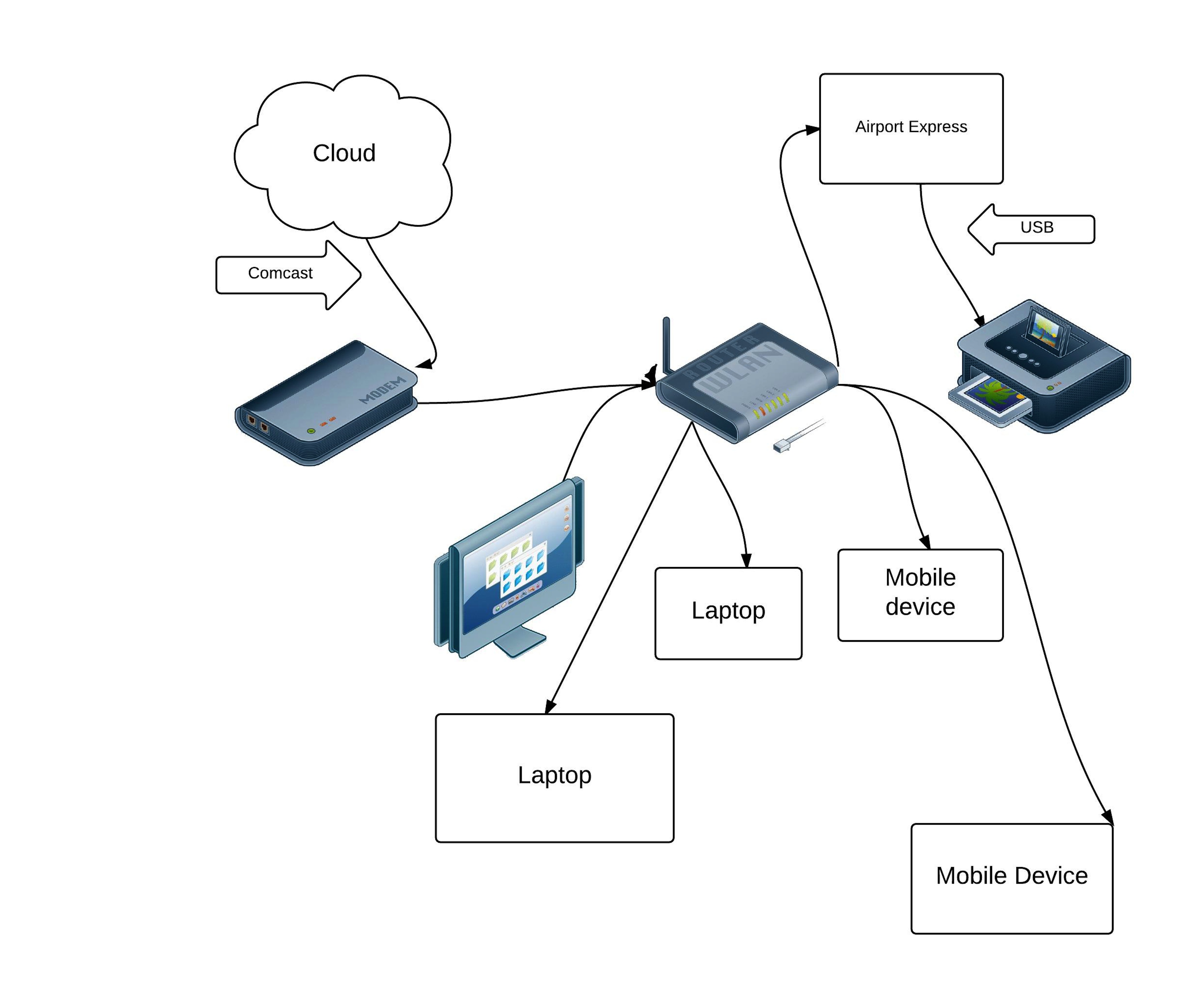 - On my home network is my iPod, my phone, my laptop, my dad's phone, iPad and laptop, my mom's phone iPad and laptop, our phone service, our TV, and our Wii.