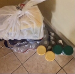 These are the supplies I collected from friends and family, including: hand sanitizer, disinfecting wipes, breakfast bars, and water bottles.