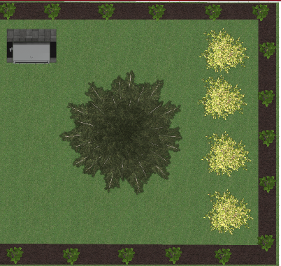 - El jardín es bastante bonito y totalmente elegante, grande pero simple. Hay muchas flores y seis árboles porque le interesante dibujar, escuchar música y leer. ¡Super hermoso!