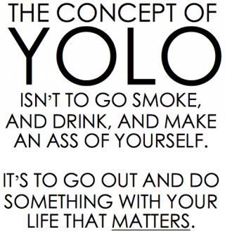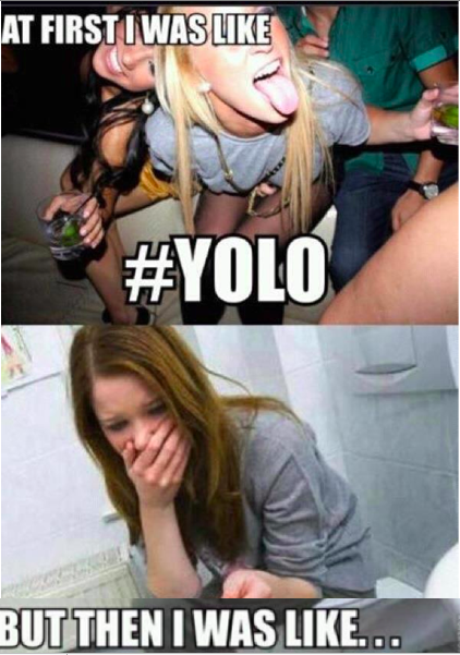 In these pictures the term Y.O.L.O is a youth slang word in a song by an artist named Drake referring to the saying "You Only Live Once". As you can see within the picture many teens take it the wrong way and end up making a big mistake that can change their life forever.