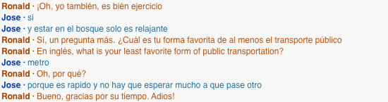 I still need to work on not using WordRefrence as much. I also need to solidify my understanding of ser v. estar. There was a point in the conversation where I was confusing the two verbs.