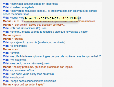 My goal was to find examples of when the subjunctive and imperfect tenses are used in everyday conversation. This conversation was some what helpful in meeting that goal. Vidal had some difficulty thinking of specific examples, but was able to give me a few that helped me get the general idea.