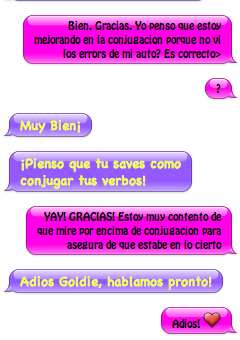 This interaction helped me by helping me correct my little mistakes like "la" and "el". I now am more careful with my masculine and feminine verbs and words.What specifically did you do well according to your goals/expectations?