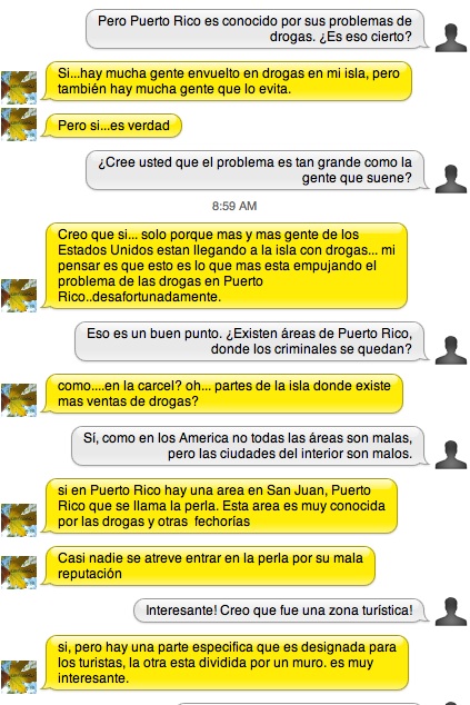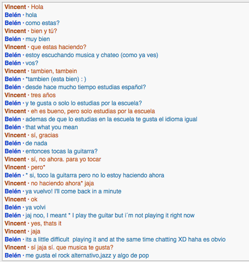 I had planned to interview my old spanish teacher from my old school but because of various things, namely schoolwork, I was not able to get to her for this weeks interview but I should be able to interview her for the following weeks. The person who so graciously offered to help me I met on a language learning site given to us by our teacher, this site was LiveMocha. THe person that I ended up talking to was named Carlos and he was very helpful aside from a misunderstanding where I had not phrased the question very well.